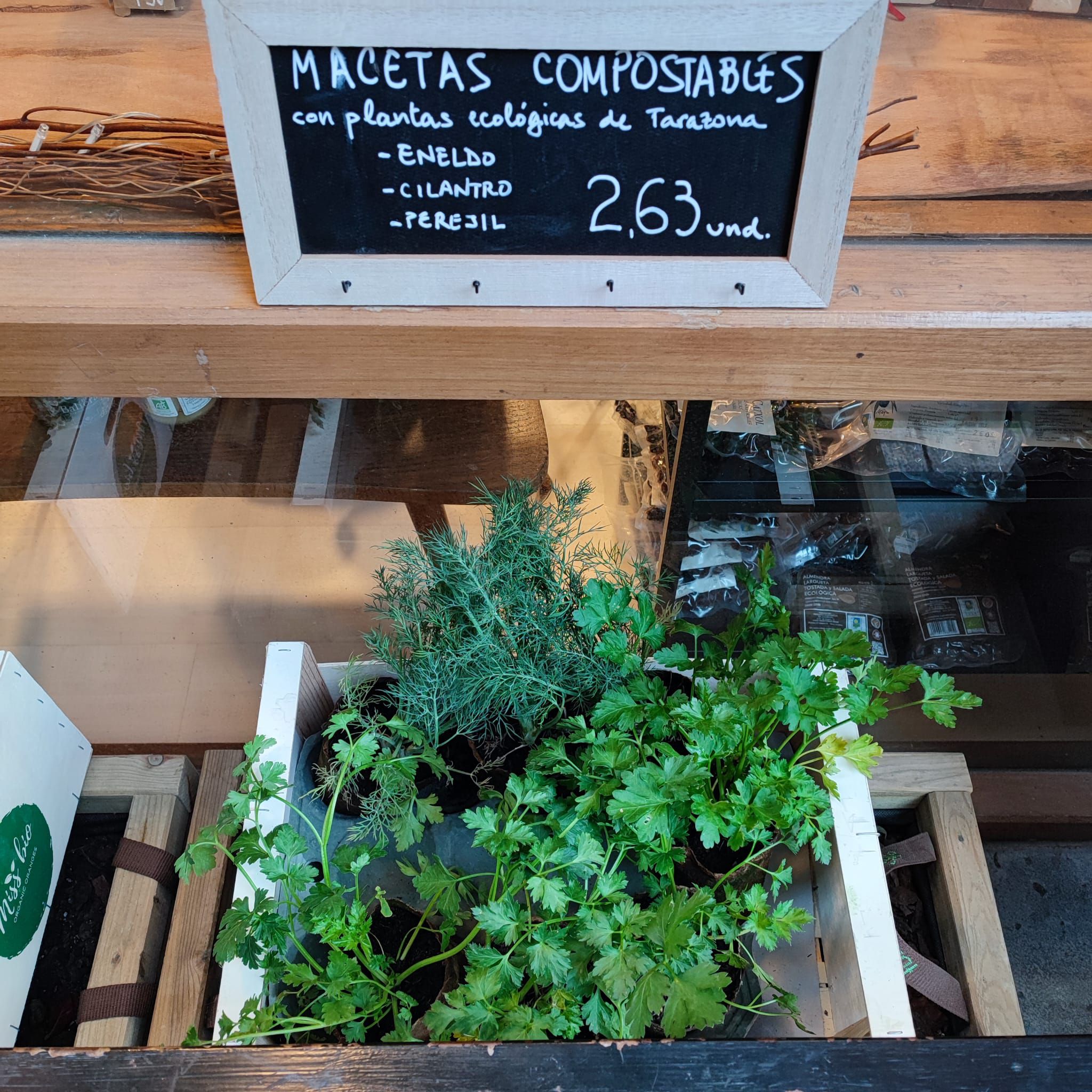 Acabamos de poner a la venta en la tienda física del pasaje de los Giles, y próximamente en la web, macetas compostables de plantas aromáticas.