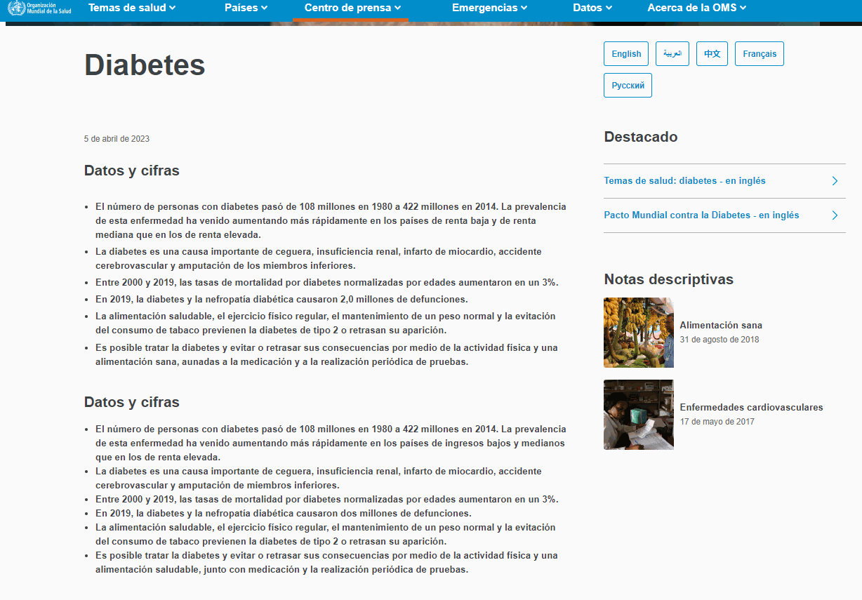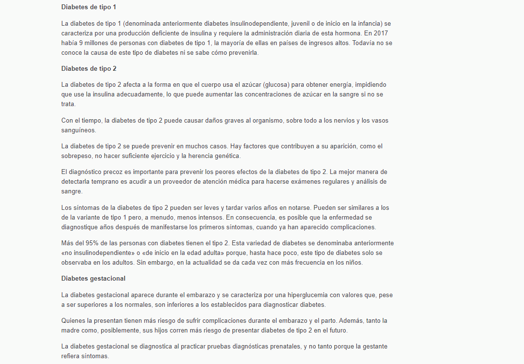 De 108 millones de personas en 1980 a 422 millones en 2014 con dicha enfermedad "diabetes". Ha supuesto entre el año 2000 y 2019 un incremento del 3% en las tasas de mortalidad por diabetes.