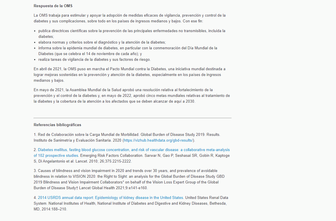 La Asamblea Mundial de la Salud aprobó en Mayo de 2021 la resolución relativa al fortalecimiento de la prevención y el control de la diabetes y, un año más tarde, aprobó cinco metas mundiales relativas al tratamiento de la diabetes y la cobertura de la atención a los afectados que se deben alcanzar de aquí a 2030.