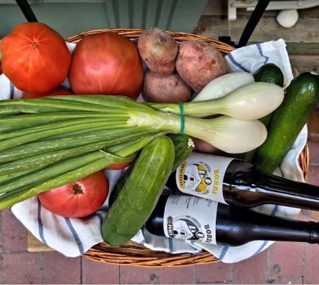¡Los productos que componen la cesta son las cervezas Borda, nuestro famoso tomate ecológico y otros productos! Una cesta sana y sabrosa con frutas y verduras de temporada y de pequeños agricultores ecológicos de Aragon.